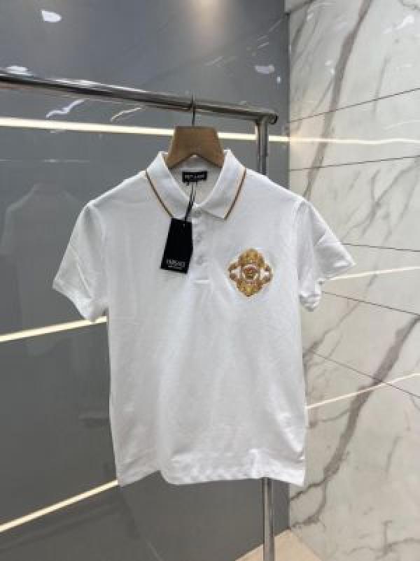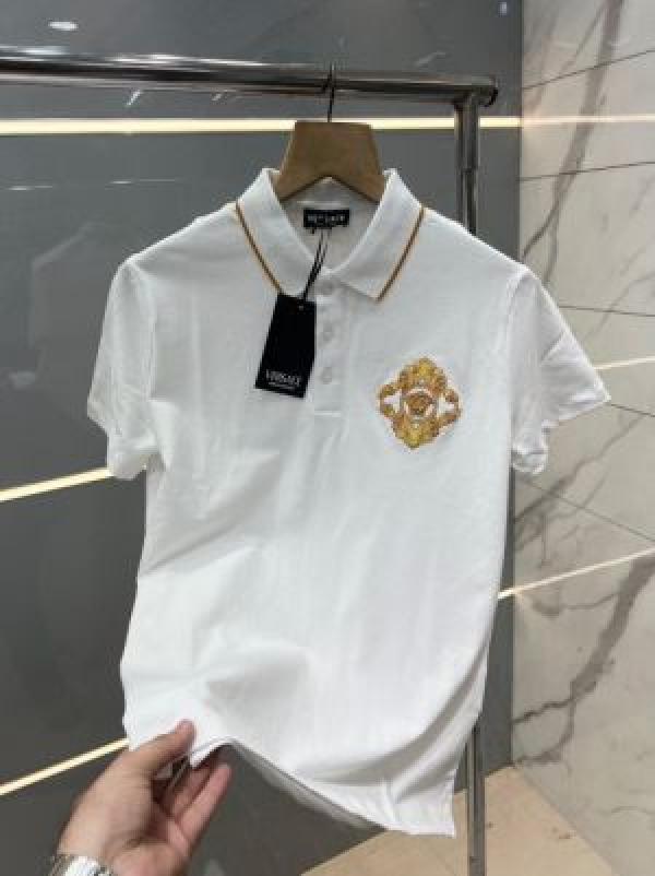 Home T-Shirts Versac e White Premium Imported Pique Polo Tshirt with Embroidered Logo and Collar Design 2759